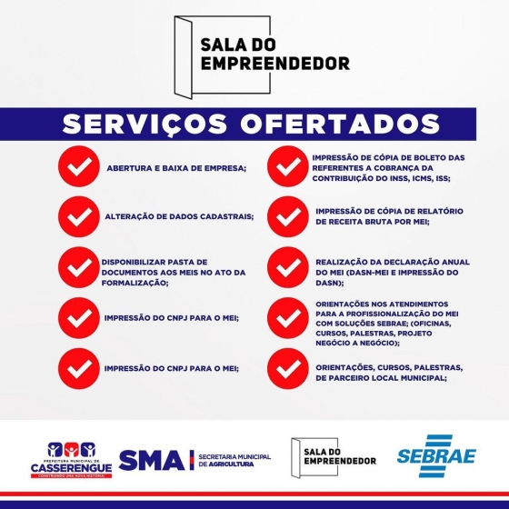 Serviços ofertados na nossa Sala do Empreendedor