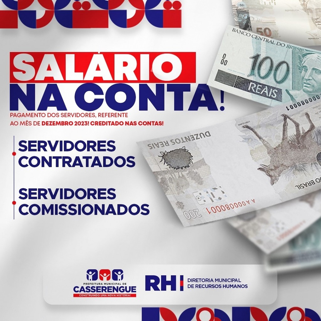 O pagamento dos servidores referente ao mês de dezembro já se encontra disponível para retirada.