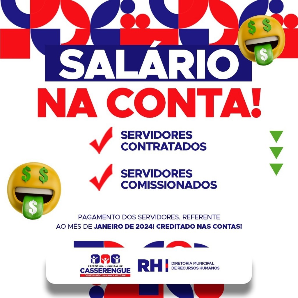 O pagamento dos servidores referente ao mês de Janeiro já se encontra disponível para retirada