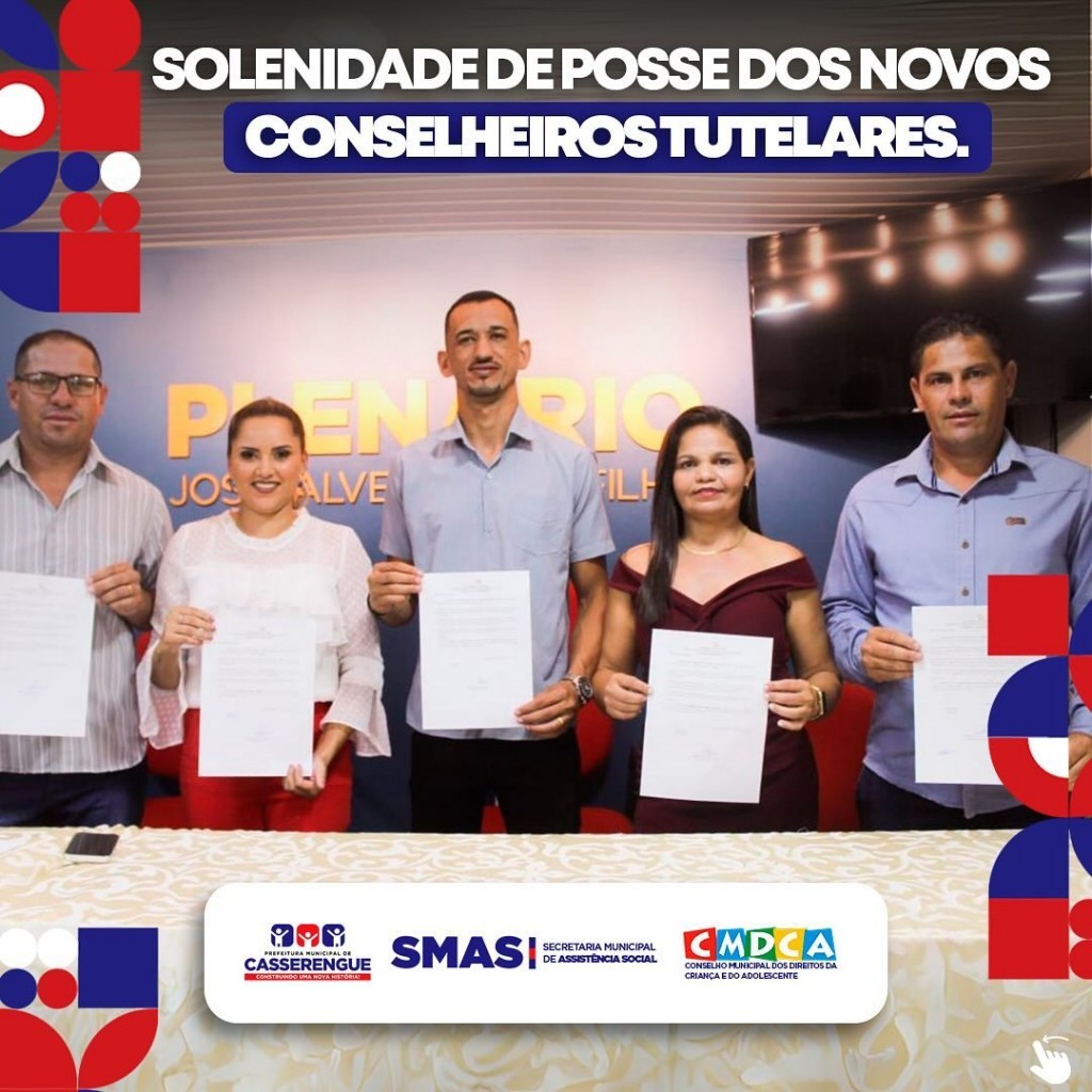 Na noite de ontem, quarta-feira (10/01) na Câmara Municipal de Casserengue, ocorreu a posse dos novos conselheiros tutelares para o mandato de 2024 a 2027. A eleição ocorreu no dia 1° de outubro, onde 2154 Casserenguenses foram às urnas para escolher aqueles que representarão e defenderão os direitos das crianças e adolescentes.