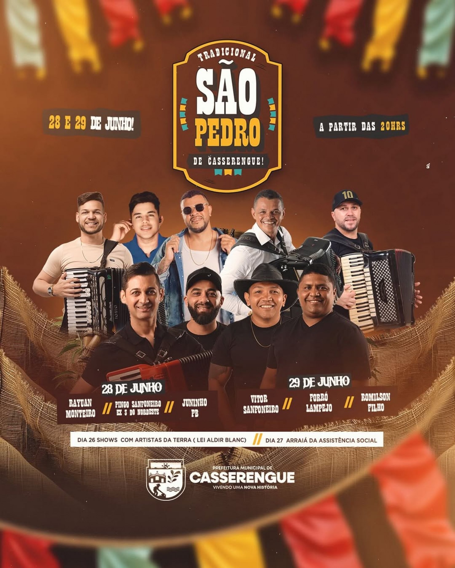 Nossa tradição junina está mais viva do que nunca, e a programação oficial dos festejos de São Pedro já está confirmada!