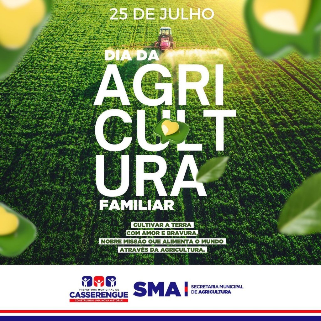 Hoje celebramos os agricultores familiares, que produzem alimentos saudáveis e sustentáveis para o Brasil, eles são importantes para a segurança alimentar, a biodiversidade, a cultura e a economia. A prefeitura de Casserengue agradece e parabeniza a esses trabalhadores essenciais para nosso município e paro o nosso país.