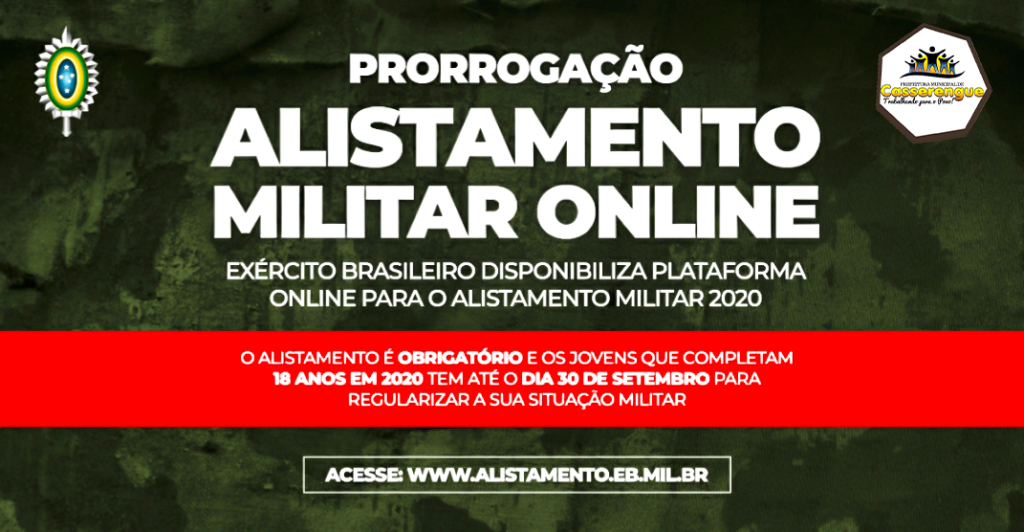 Devido a pandemia do coronavírus, este ano o alistamento está sendo realizado pela internet. Os jovens que completam 18 anos em 2020 agora tem até o dia 30 de setembro para regularizar a sua situação militar.