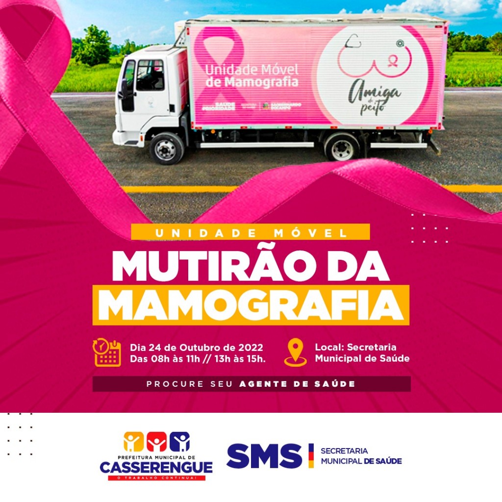 Com o objetivo de alertar sobre a importância do diagnóstico precoce do câncer de mama e convidar mulheres a atualizar exames de mamografia. A Secretaria Municipal de Saúde abre à campanha anual Outubro Rosa, mês dedicado à prevenção e detecção precoce do câncer de mama.