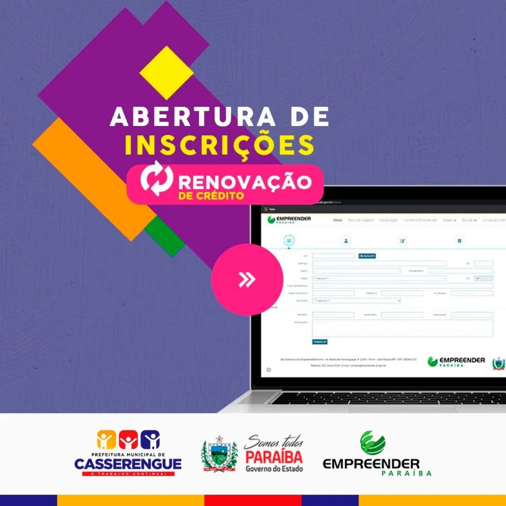 O Programa EMPREENDER PB vai abrir, na próxima quarta-feira (06/04/22), a partir das 8h, inscrições para RENOVAÇÃO DE CRÉDITO.