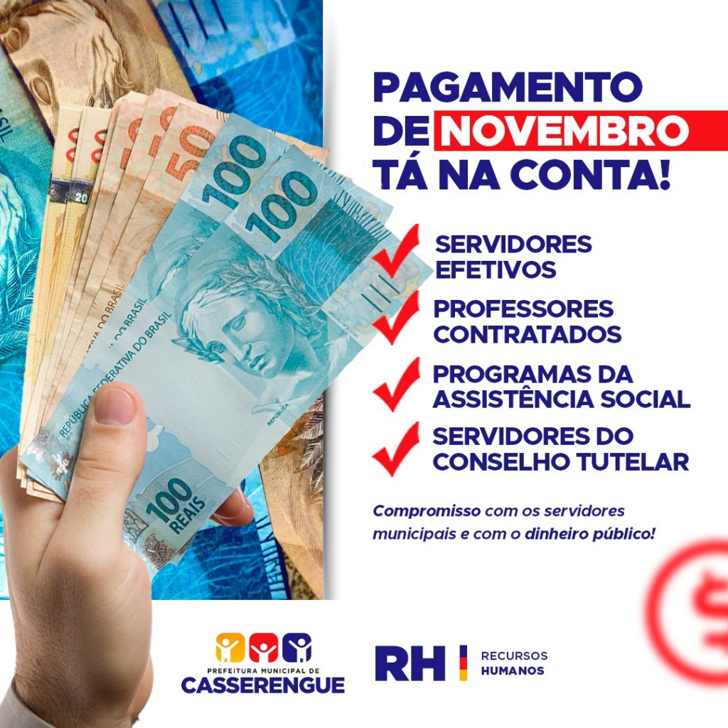 A Prefeitura de Casserengue por meio da Diretoria de Recursos Humanos, efetuou hoje (01/12), o pagamento dos seus: